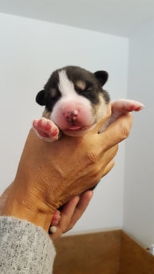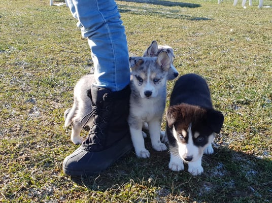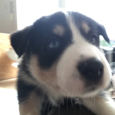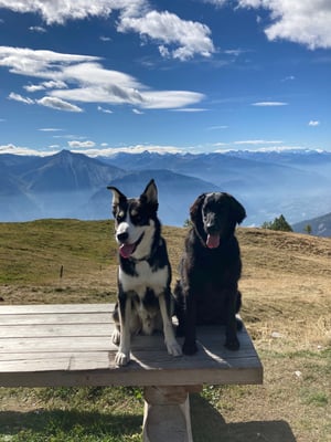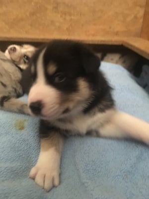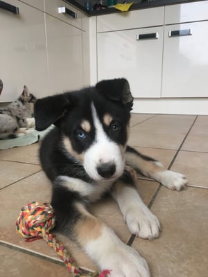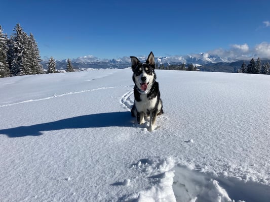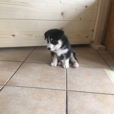 Ayo, ein Rüde, wurde am 30. Oktober 2018 im Kanton Freiburg geboren. Ein Mischling aus australischem Schäfer (Mutter) und sibirischem Husky (Vater)